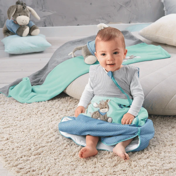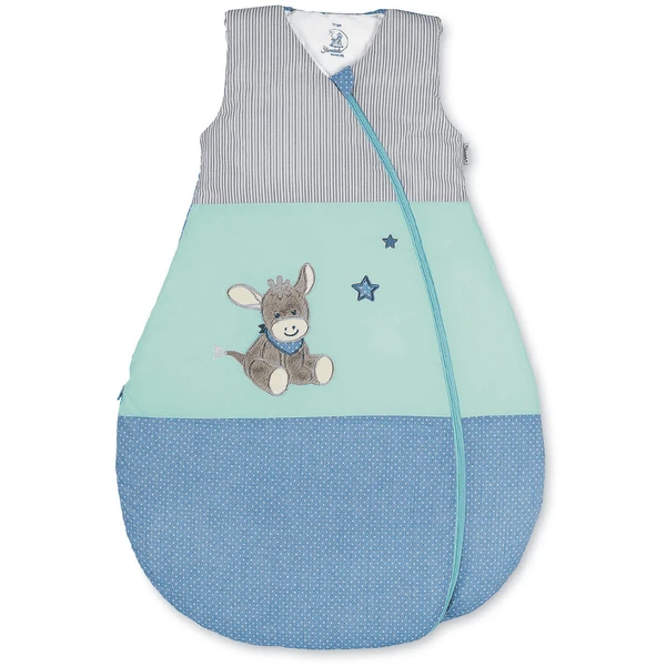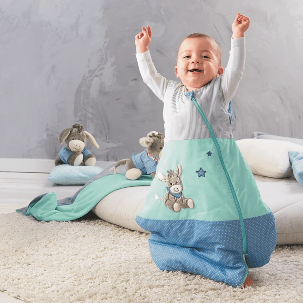 Kuschelig warmer, leichter Funktions-Schlafsack mit Motiv Esel Emmi. Das